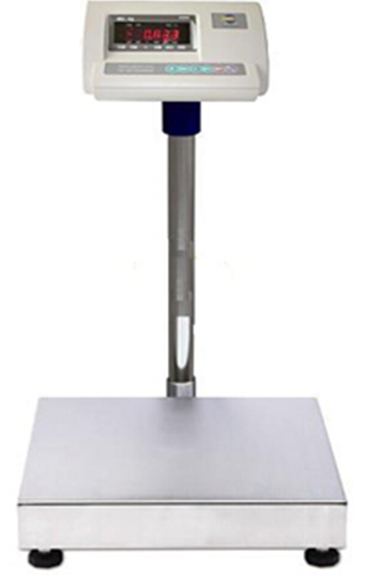 有單獨的載荷稱重臺和連接立柱安裝稱重顯示儀表.工作原理:電子臺秤是利用電子應變元件受力形變原理輸出微小的模擬電信號,通過信號電纜傳送給稱重顯示儀表,進行稱重操作和顯示稱量結果.電子臺秤有多種顯示方式:數碼管顯示[LED],液晶顯示[LCD],瑩光顯示[VFD]和液晶點振顯示.稱臺安裝過載保護裝置,保護稱重傳感器[防止極限過載].電子臺秤的稱量范圍在30-600公斤左右。